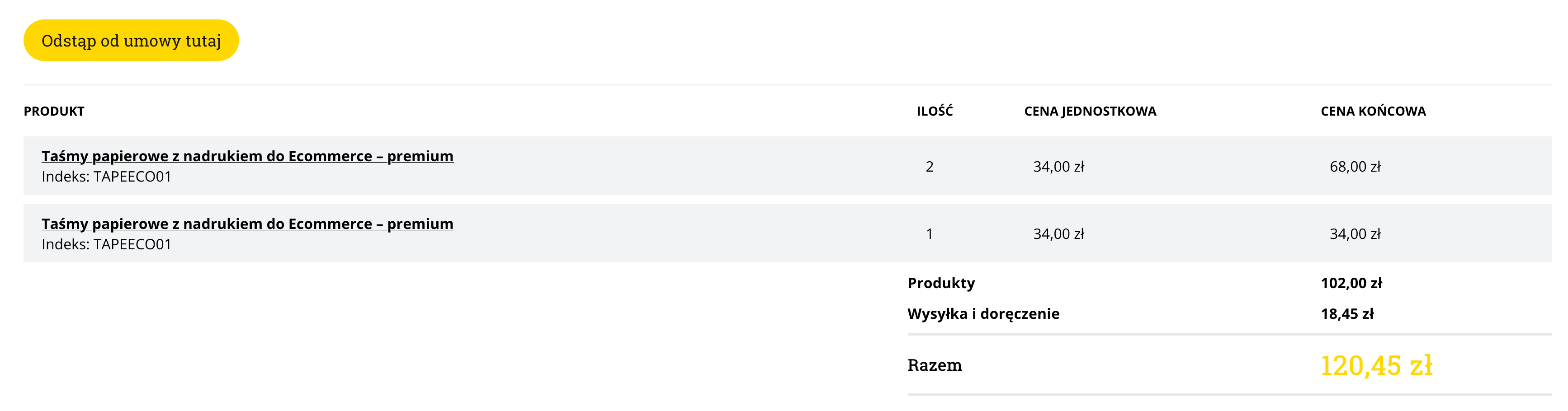 Dedykowany formularz odstąpienia od umowy